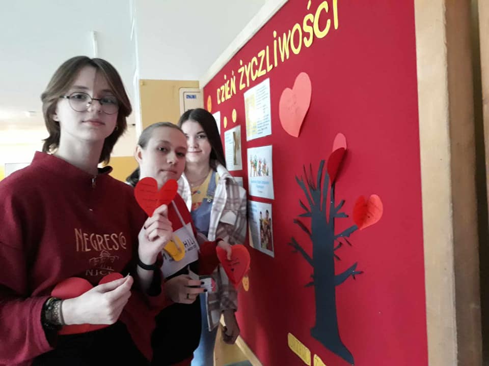 21 listopada to szczególna okazja, by zastanowić się czy jesteśmy wobec siebie życzliwi, bo na całym świecie świętowany jest "Dzień Życzliwości". Z tej okazji, jak co roku, społeczność uczniowska Szkoły w Slawsku zaangażowała się w przygotowanie radosnych emotikonów. Na korytarzu pojawiło się Drzewo Życzliwości, do którego każda klasa przyczepiała serca z "dobrym słowem " dla innych uczniów. Pamiętajmy przesłanie akcji: "bądźmy życzliwi dla siebie codziennie, a nie tylko od święta ".