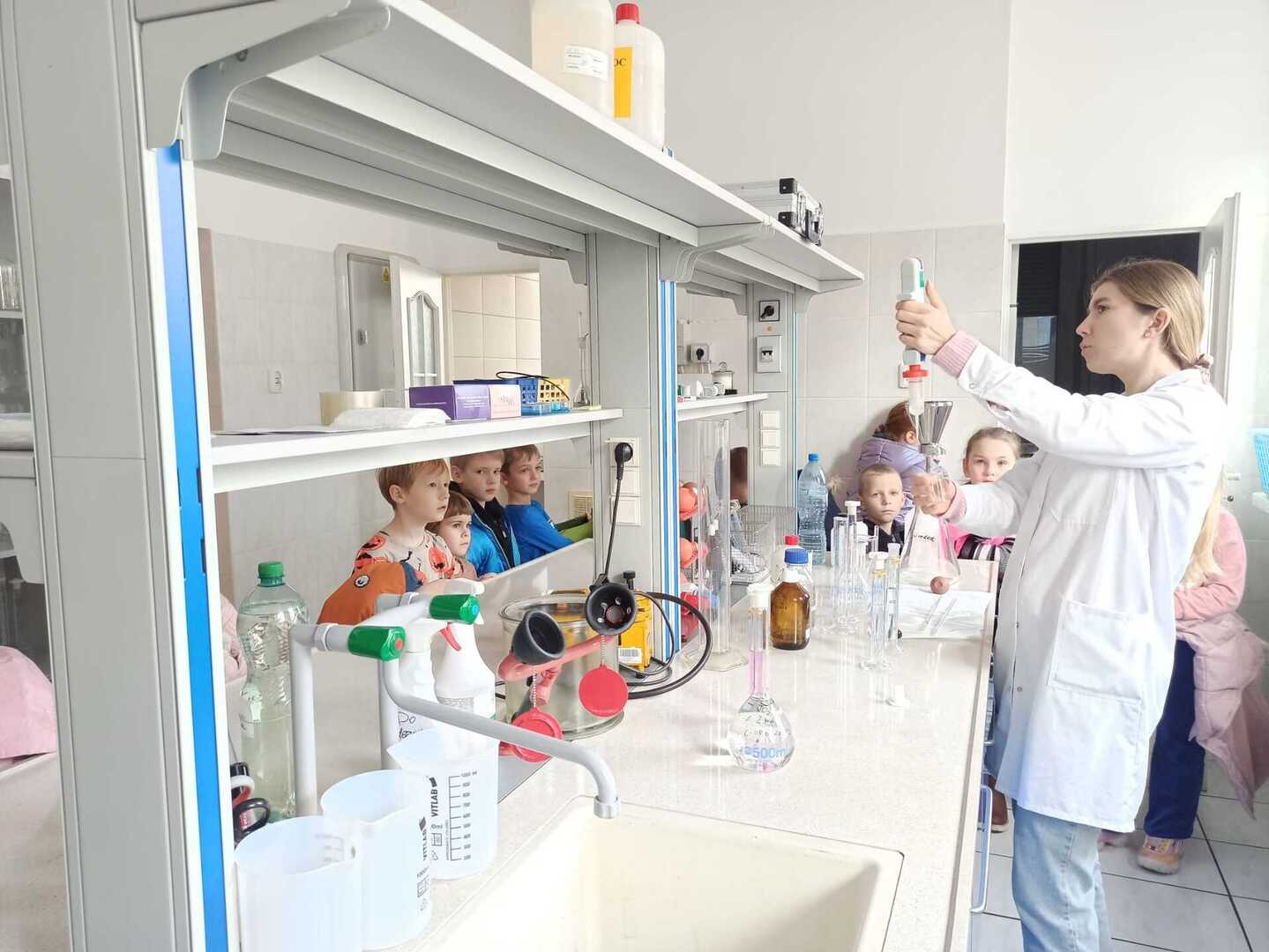 Dnia 27 listopada 2023 roku klasy I a oraz I b wybrały się na wycieczkę do Powiatowej Stacji Sanitarno-Epidemiologicznej w Koninie. Dzieci zostały zapoznane z pracą, zakresem prowadzonych badań oraz specjalistyczną aparaturą i wyposażeniem w PSSE. Brały udział w warsztatach „Mali badacze – czego dowiemy się o wodzie w laboratorium”, których głównym celem było odkrywanie właściwości wody. Oglądały film z serii „Było sobie życie – mózg”. Podczas seansu podróżowały do wnętrza ludzkiego organizmu, odkrywając tajemnicze moce oraz zakamarki swojego mózgu. Uczniowie uczestniczyli także w działaniu edukacyjnym na temat higieny jamy ustnej, dowiedzieli się czym jest próchnica oraz czym zajmuje się lekarz dentysta. Pracownik Oświaty Zdrowotnej i Promocji Zdrowia przy użyciu szczęki zębowej pokazywał w jaki sposób prawidłowo myć zęby. Dzieci otrzymały broszury z zadaniami do rozwiązania nt higieny jamy ustnej oraz magnesy. Uczniom najbardziej podobała się wizyta w laboratorium, gdzie omówiono i zaprezentowano poszczególne rodzaje i elementy sprzętu używanego podczas prac w laboratorium, m.in. wirówkę laboratoryjną czy homogenizator, kolby, zlewki, pipety, menzurki, bagietki. Pracownicy poruszali zagadnienia związane z prowadzeniem analiz w laboratorium badania żywności i badania wody.