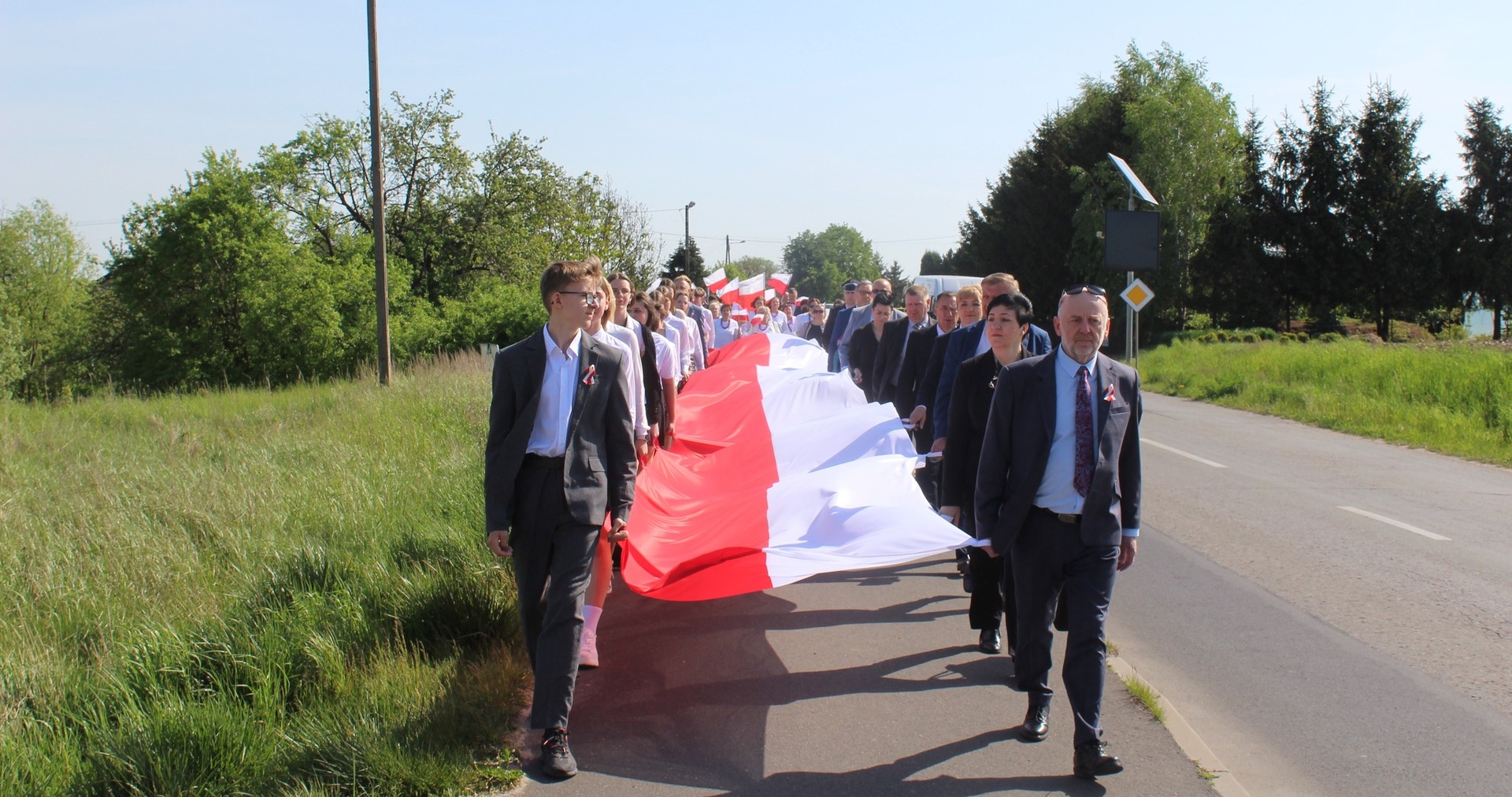 Uczestnicy Happeningu przeszli ze Szkoły Podstawowej w Sławsku do Domu Kultury w Sławsku z gigantyczną flagą „biało-czerwoną”. Było to niezwykłe wydarzenie.