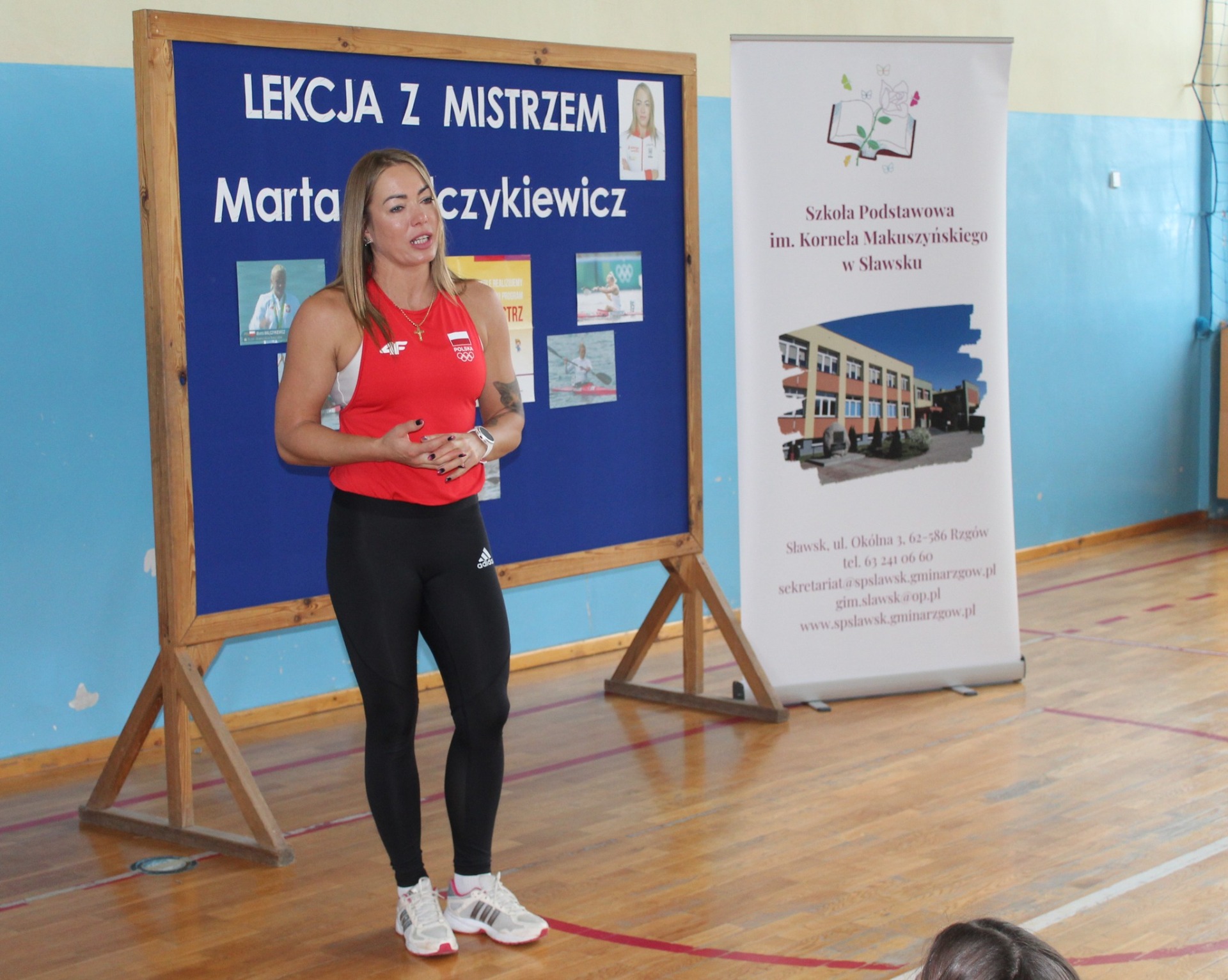 13 listopada br. w naszej szkole gościła wyjątkowa osoba – Marta Walczykiewicz – kajakarka, wicemistrzyni olimpijska z 2016 roku w Rio De Janeiro, wielokrotna medalistka mistrzostw świata i Europy oraz trzydziestotrzykrotna mistrzyni Polski. Spotkanie odbyło się w ramach programu „Mały Mistrz” realizowanego przez Ministerstwo Sportu i Turystyki. Uczniowie klas I-III wzięli aktywny udział w „Lekcji z Mistrzem”, mogli również porozmawiać z Mistrzynią, dowiedzieć się, jak wygląda życie zawodowego sportowca oraz jaką drogę trzeba przejść, aby osiągnąć sukces. Na zakończenie spotkania uczniowie otrzymali autografy od naszego Gościa.