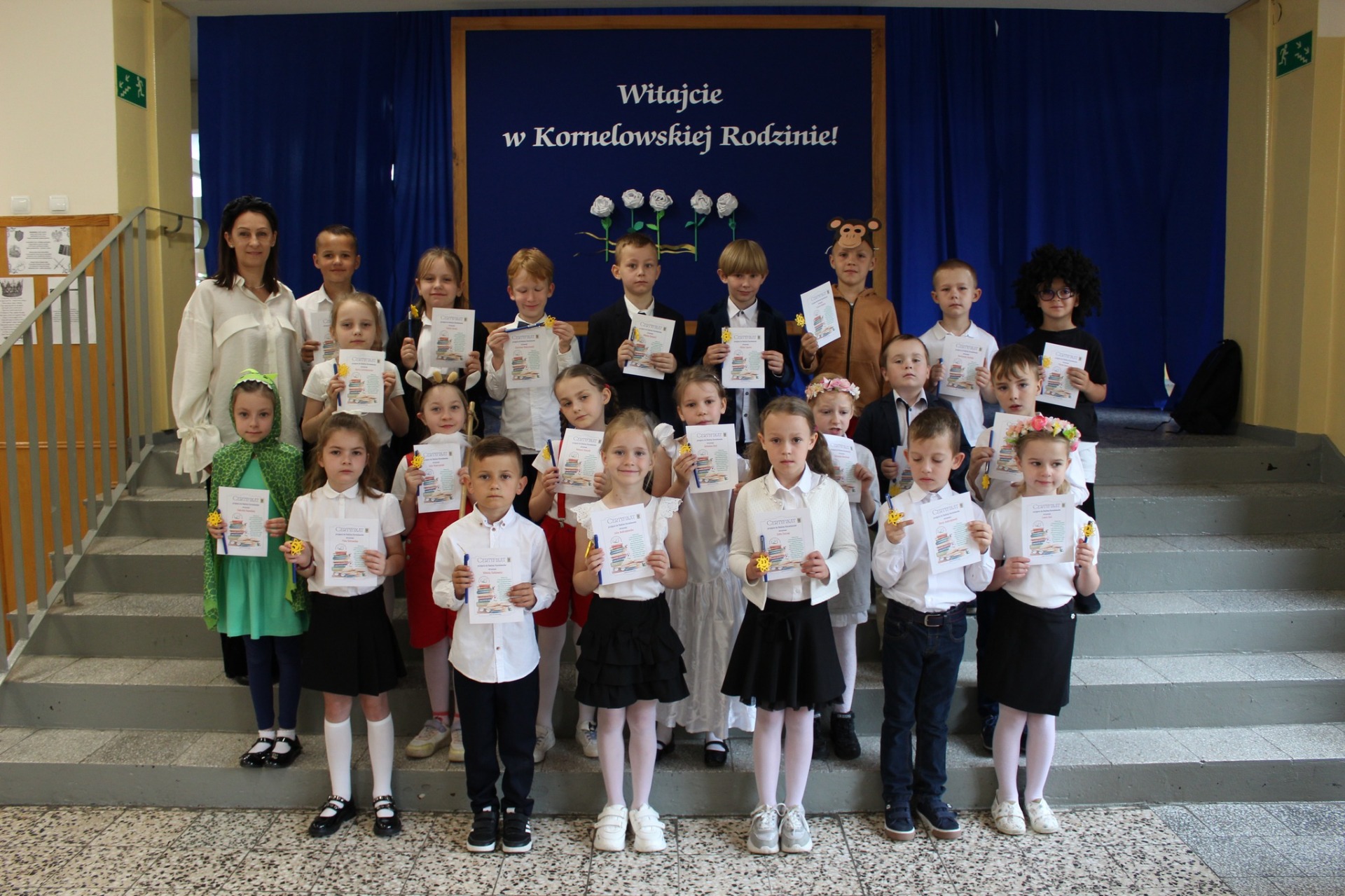 Dziś w naszej szkole obchodziliśmy wyjatkowe święto - Dzień Patrona. Kornel Makuszyński pisał z miłością o dzieciach i dla dzieci. Bohaterowie książek naszego Patrona uczą nas, że warto być odważnym, ciekawym świata, pomocnym i wiernym swoim wartością. W tym ważnym dniu uczniowie klasy I w sposób symboliczny włączeni zostali do naszej szkolnej rodziny - rodziny Kornelowców. Pierwszoklasiści udowodnili, że zasługują na to miano.
