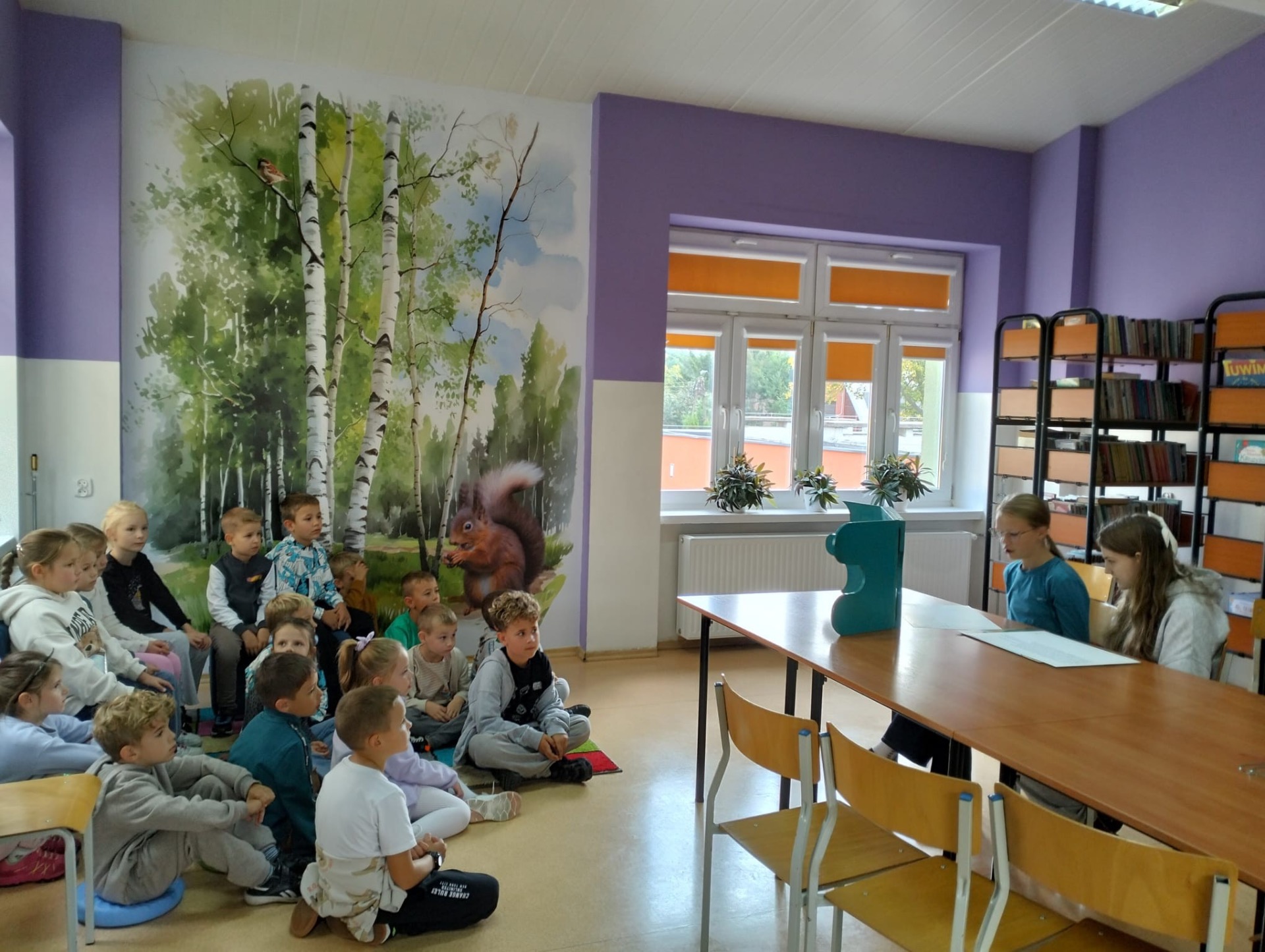 W Ogólnopolskim Dniu Głośnego Czytania, który obchodzony jest 29 września w naszej szkole przeprowadzona została akcja czytelnicza pt: "Starszy czyta młodszemu", podczas której uczniowie z klas starszych czytali fragmenty książek swoim młodszym kolegom. Na trzeciej godzinie lekcyjnej bibliotekę szkolną odwiedzili uczniowie klas pierwszych, aby obejrzeć teatrzyk Kamishibai i wysłuchać baśni H. Ch. Andersena pt.: "Brzydkie Kaczątko". Jednocześnie starsi uczniowie udali się z wizytą do klas młodszych (II-III) oraz (IV-VI), aby przeczytać na głos fragmenty znanych i mniej znanych książek dla dzieci. Wśród propozycji znalazły się "Tajemnica zwierząt" Ma. Widmarka i H. Willis z serii Biuro Detektywistyczne Lassego i Mai oraz "Niesamowite przypadki Cymeona Maksymalnego" E. Niziurskiego. Z kolei uczniowie klas VII-VIII wysłuchali fragmentów Dziennika Anny Frank. Celem akcji było propagowanie czytelnictwa wśród dzieci i młodzieży poprzez wspólne czytanie książek, integracja społeczności szkolnej i uświadomienie korzyści płynących z głośnego czytania dla rozwoju poznawczego, słownictwa i wyobraźni. Czytanie fragmentów książek zaciekawiło i zachęciło niektórych uczniów do wypożyczenia książek z biblioteki szkolnej w czasie przerwy międzylekcyjnej.