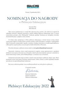 NOMINACJA PANI MARII BARTCZAK NAUCZYCIELA...