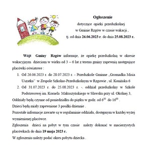 Dyżur wakacyjny w przedszkolach na terenie...