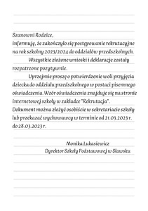ZAKOŃCZENIE POSTĘPOWANIA REKRUTACYJNEGO DO...